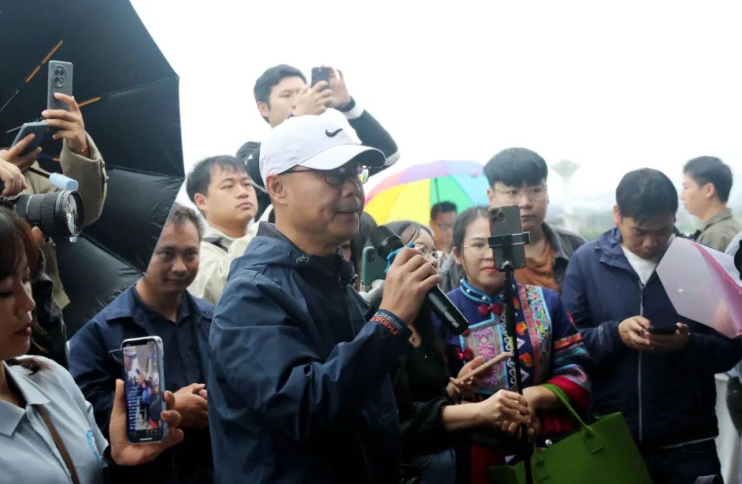10月27日拍攝的2023年融安金桔上市時間新聞發布會現場。(韋榮軍 攝)“融安縣農業農村局組織水果站、金桔所、金桔行業協會、市場監督管理局、供銷社等相關人員在全縣范圍內進行了2次金桔成熟度調查,根據近五年數據資料分析,融安金桔成熟時間基本同期,差異不大,今年11月8日有88%左右果園有果上市,為使消費者有個穩定記憶,所以今年融安金桔上市時間繼續確定為11月8日。”融安縣農業農村局局長黃華強在發布會上對統一上市時間進行解釋說明。在融安縣萬畝金桔園舉行的2023年融安金桔上市時間發布會上,副縣長陶媚在推薦融安金桔。(韋榮軍 攝)