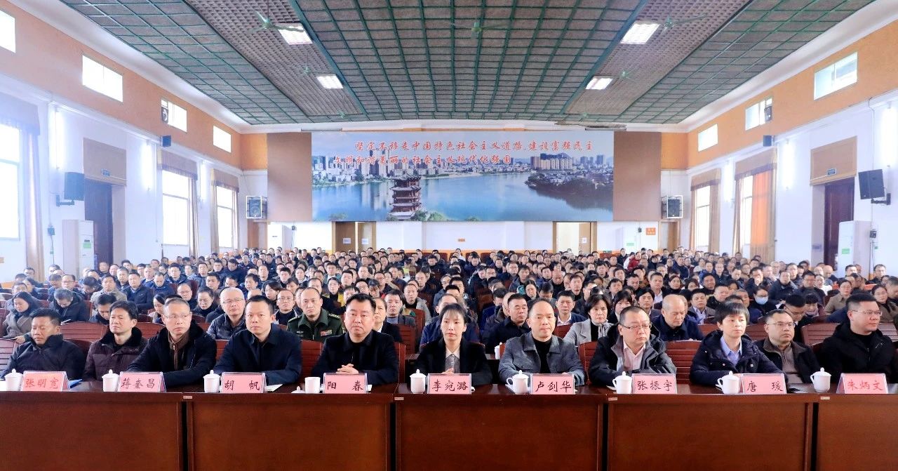 12月31日,在縣人民會場拍攝的融安縣工業發展大會現場。(衛綱 攝)