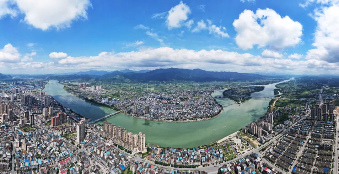 資料圖片:融安縣城航拍。(韋榮軍 攝)