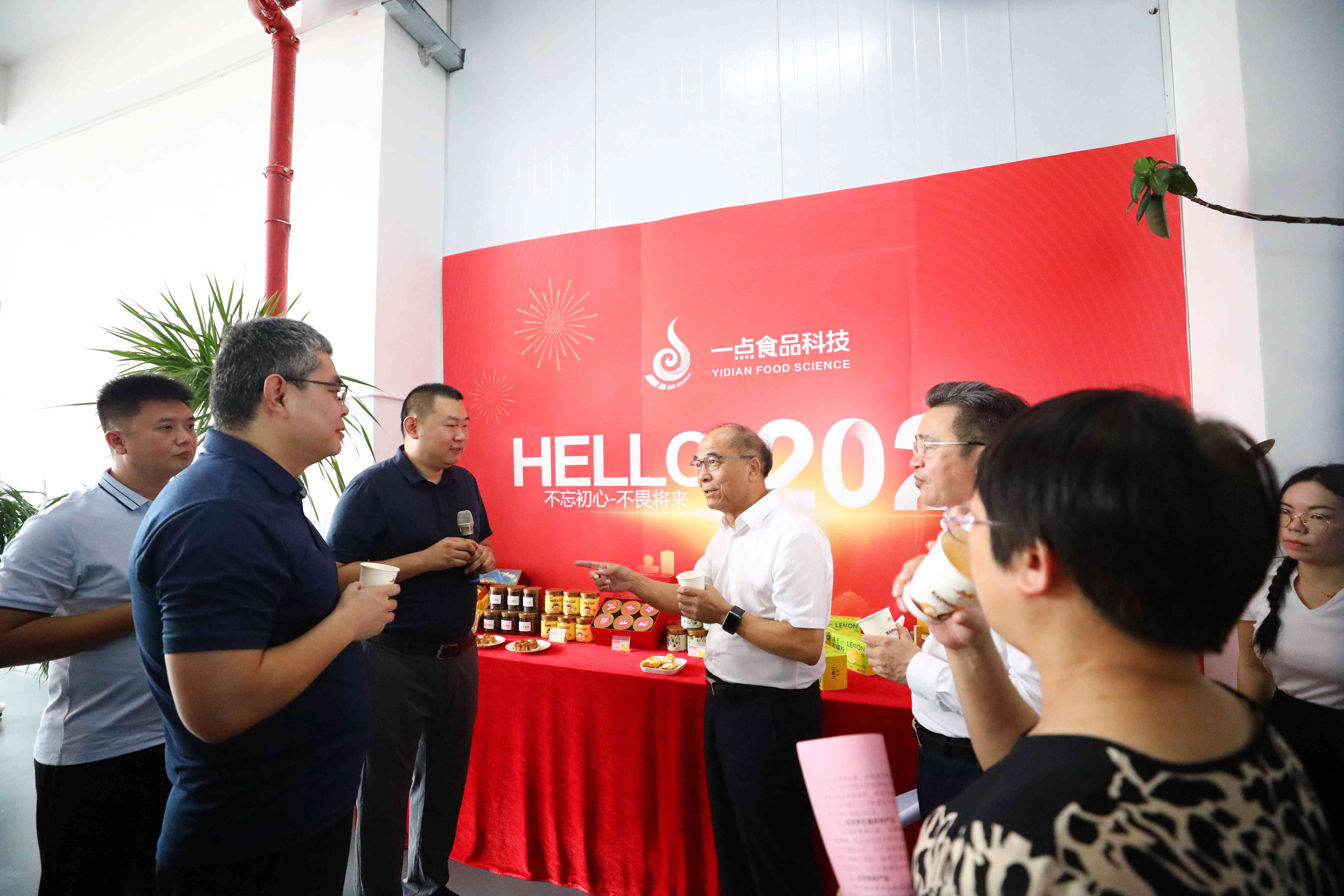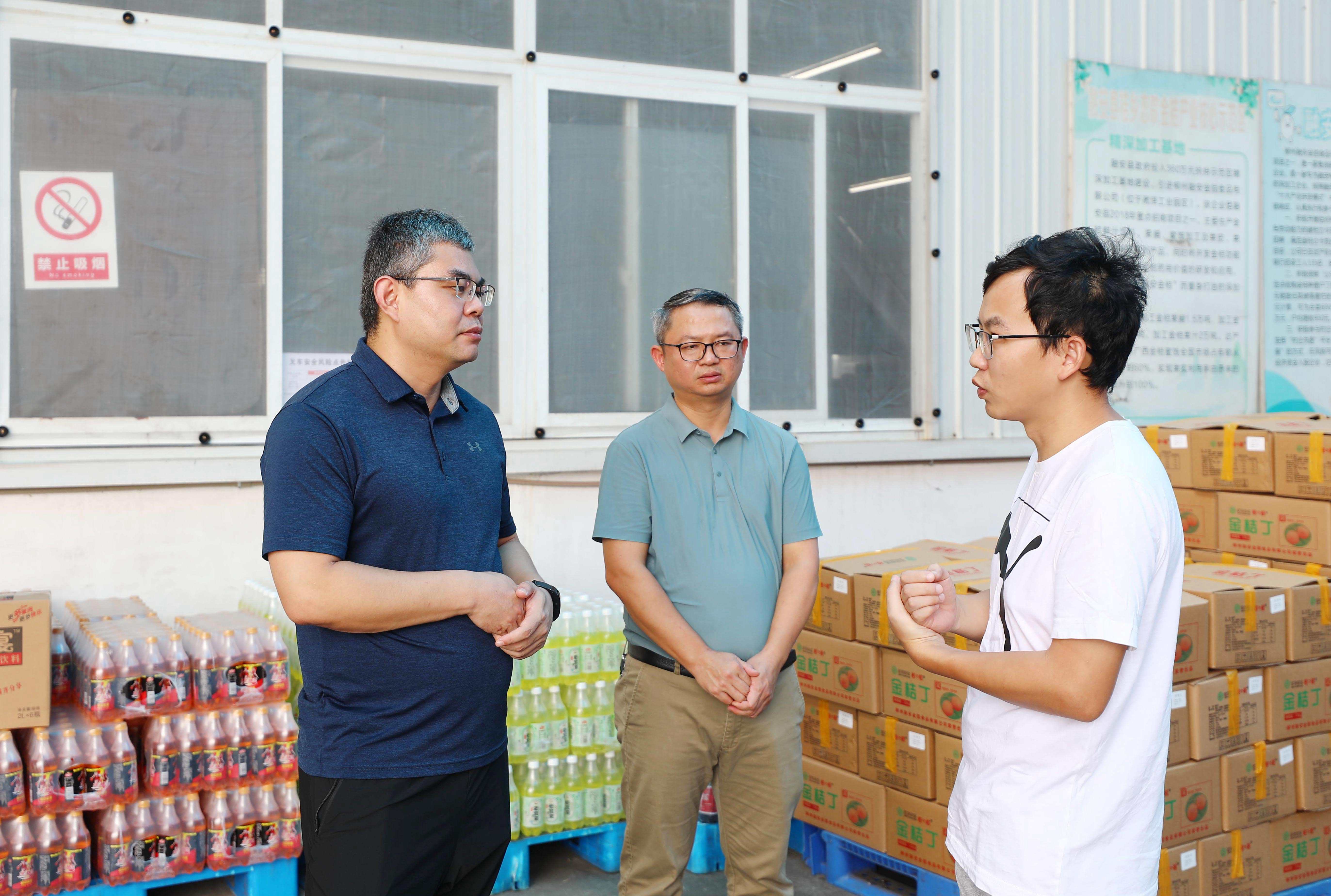 8月9日,在廣西融安一點(diǎn)食品科技有限公司,縣委書(shū)記于福堅(jiān)(左二)在了解企業(yè)產(chǎn)品銷售情況。(韋榮軍 攝)