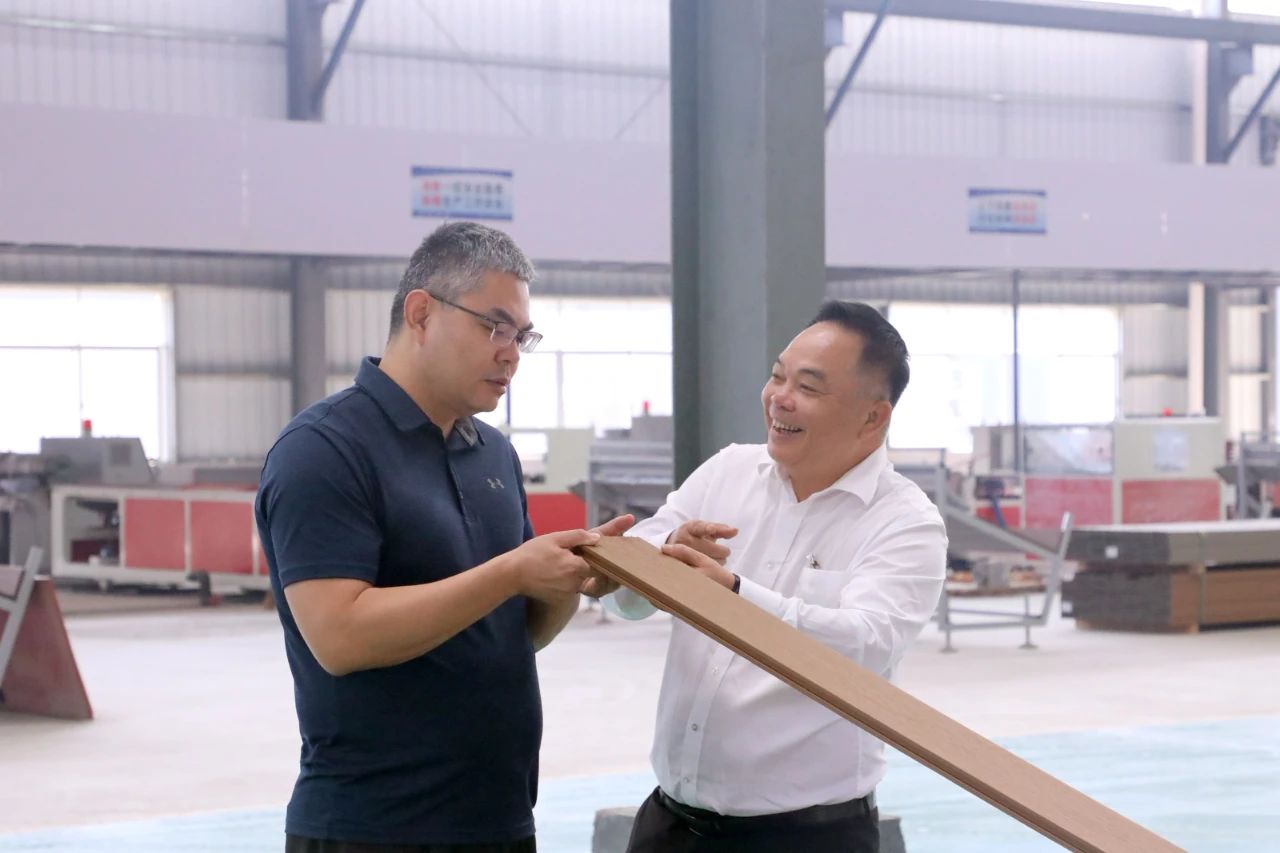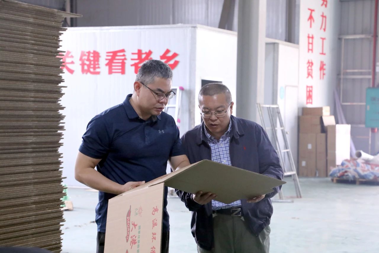 11月6日,融安縣委書記于福堅(左一)到匯嘉包裝印刷材料有限公司調研。(衛綱 攝)