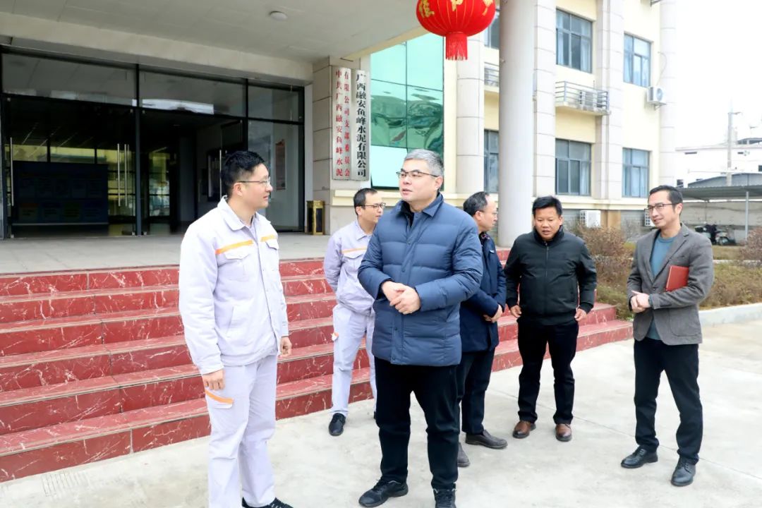 2月8日,融安縣委書記于福堅(前右一)到廣西融安魚峰水泥有限公司調研。(衛綱 攝)