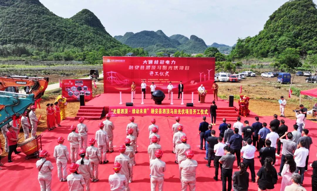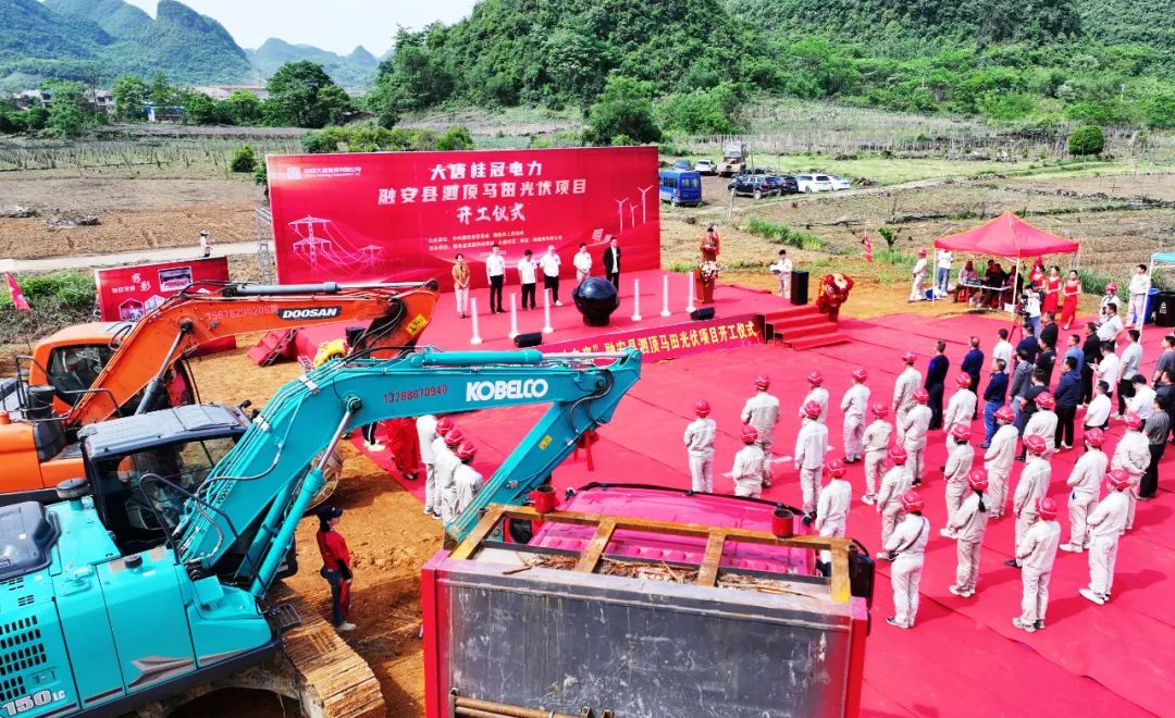 4月28日,融安縣泗頂馬田光伏項目在泗頂鎮山貝村拉正屯舉行開工儀式。(韋榮軍 攝)