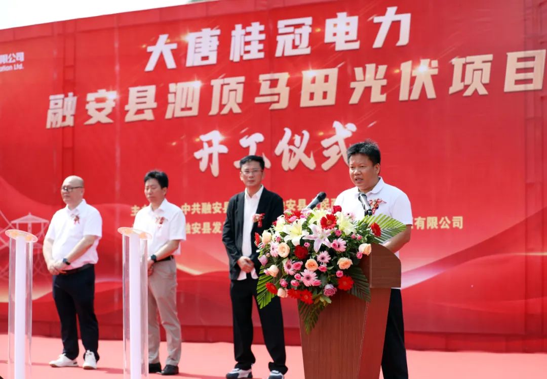 4月28日,在融安縣泗頂馬田光伏項目開工儀式上,副縣長陳遠昭致辭。(韋榮軍 攝)