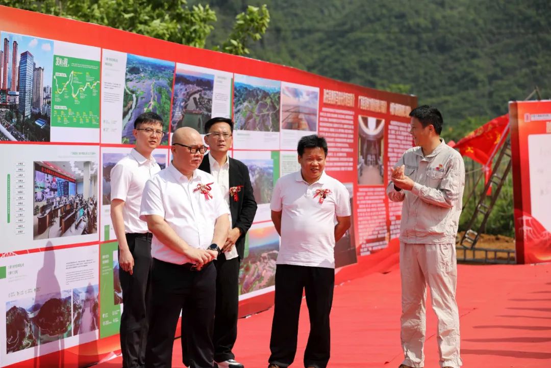 4月28日,在融安縣泗頂馬田光伏項目開工儀式上,副縣長陳遠昭(右二)在了解項目基本情況。(韋榮軍 攝)