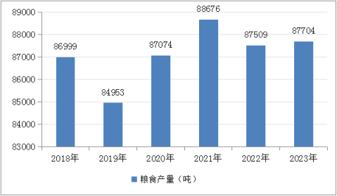 圖五 2018- 2023年融安縣糧食產(chǎn)量