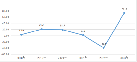 圖七? 2018-2023年融安縣固定資產(chǎn)投資增速變化圖(單位%)