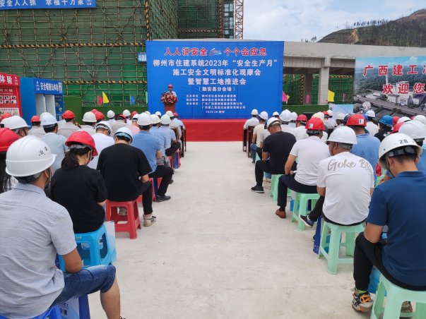 為持續樹牢安全紅線意識,推動安全生產責任落實,2023年6月9日上午,柳州市住房和城鄉建設局組織召開柳州市住建系統2023年“安全生產月”施工安全文明標準化觀摩會暨智慧工地推進會,分會場設置在我縣浮石鎮浮石工業園區生活垃圾焚燒發電項目工地現場??h人民政府副縣長陳遠昭出席會議,行業主管部門縣住房和城鄉建設局協辦并主持會議,廣西廣投康恒新能源有限公司、廣西建工集團冶金建設有限公司承辦會議,縣直有關單位和縣屬企業、在建項目相關負責人共計180余人參加會議。