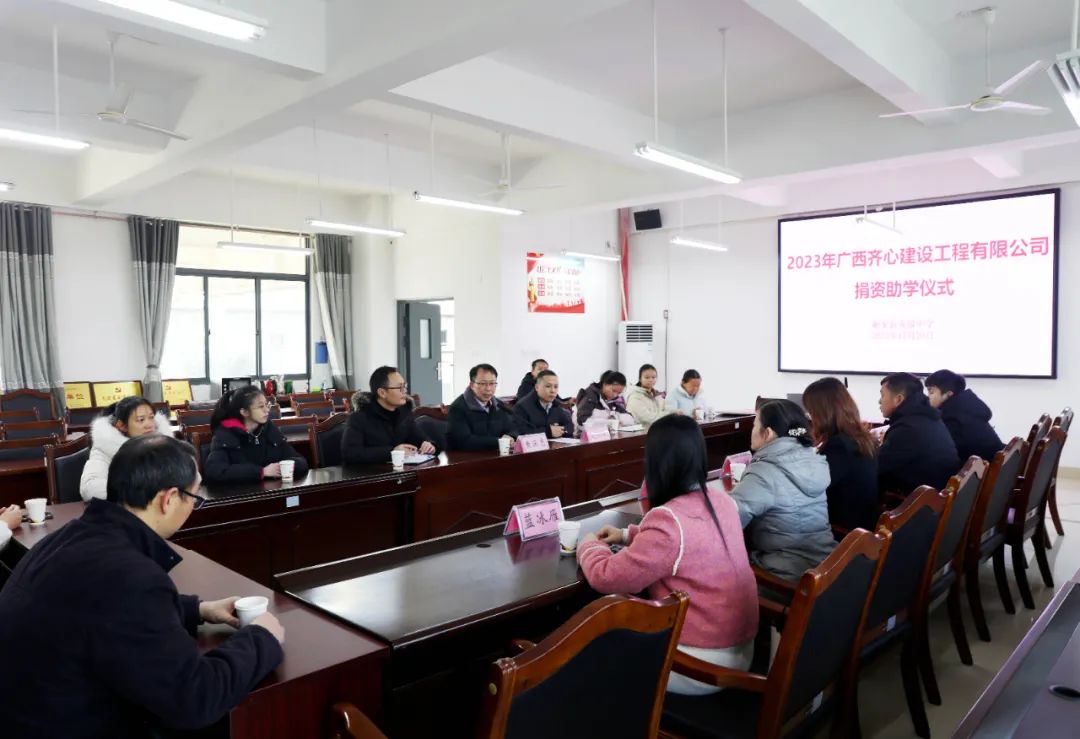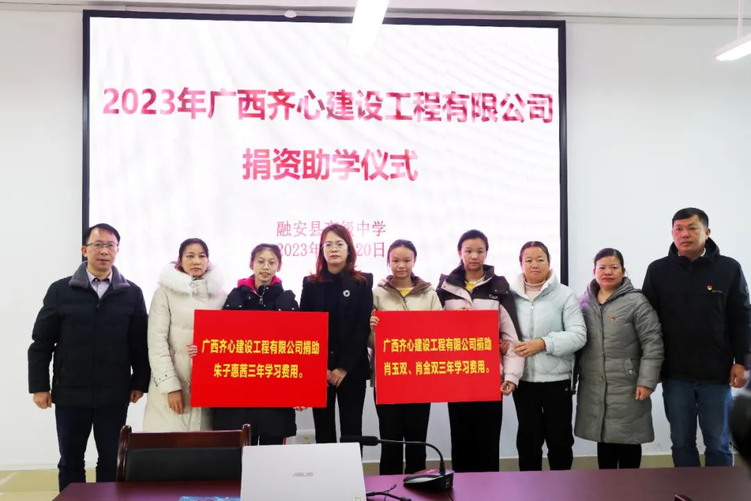 12月20日,在融安縣高級中學拍攝的廣西齊心建設工程有限公司捐資助學活動現場。(韋榮軍 攝)