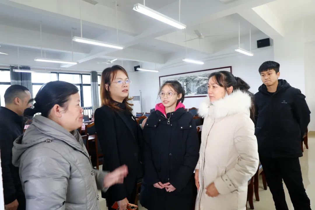 12月20日,廣西齊心建設工程有限公司負責人詢問了解受助學生學習生活情況。(韋榮軍 攝)