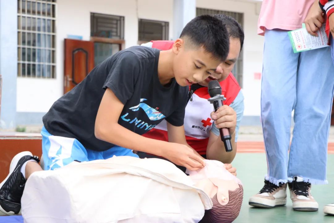 培訓會上,縣紅十字會工作人員通過現場模擬溺水場景的方式,教會孩子們如何呼救、如何撥打救援電話、如何使用長竹竿、救生繩、救生圈等救生器材,讓大家體驗溺水自救和急救的科學方法,讓他們充分認識到安全的重要和生命的可貴。