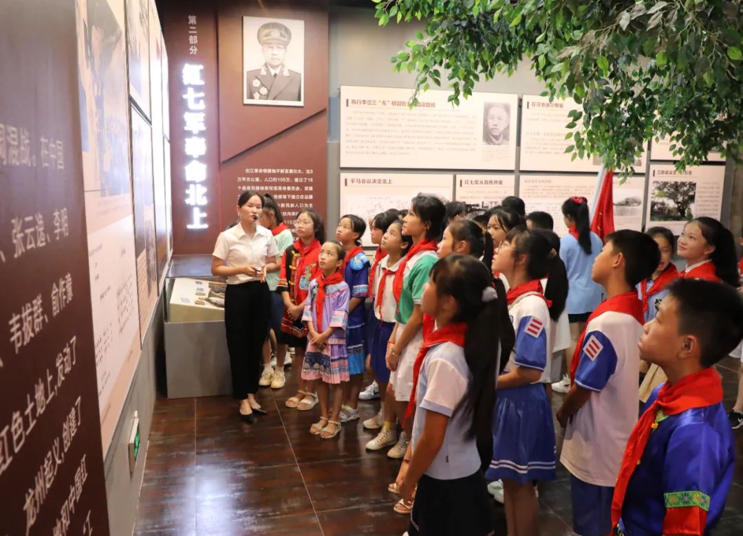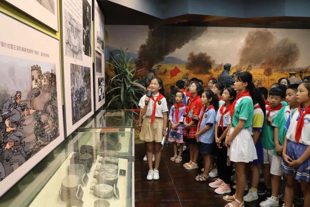 8月2日,在融安縣“紅七軍”戰(zhàn)長安紀(jì)念館,紅領(lǐng)巾講解員給少先隊(duì)員介紹紀(jì)念館。(楊曼 攝)