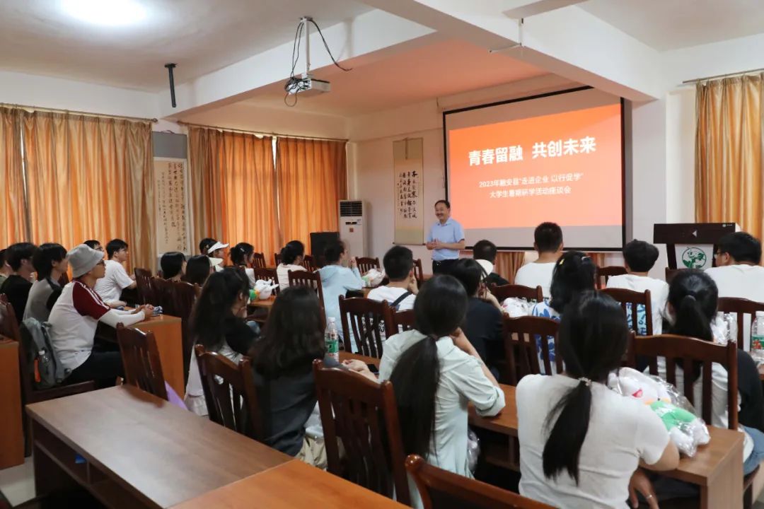 8月7日,在廣西壯象木業有限公司拍攝的“青春留融 共創未來”2023年融安縣“走進企業 以行促學”大學生暑期研學活動座談會現場。(謝護香 攝)