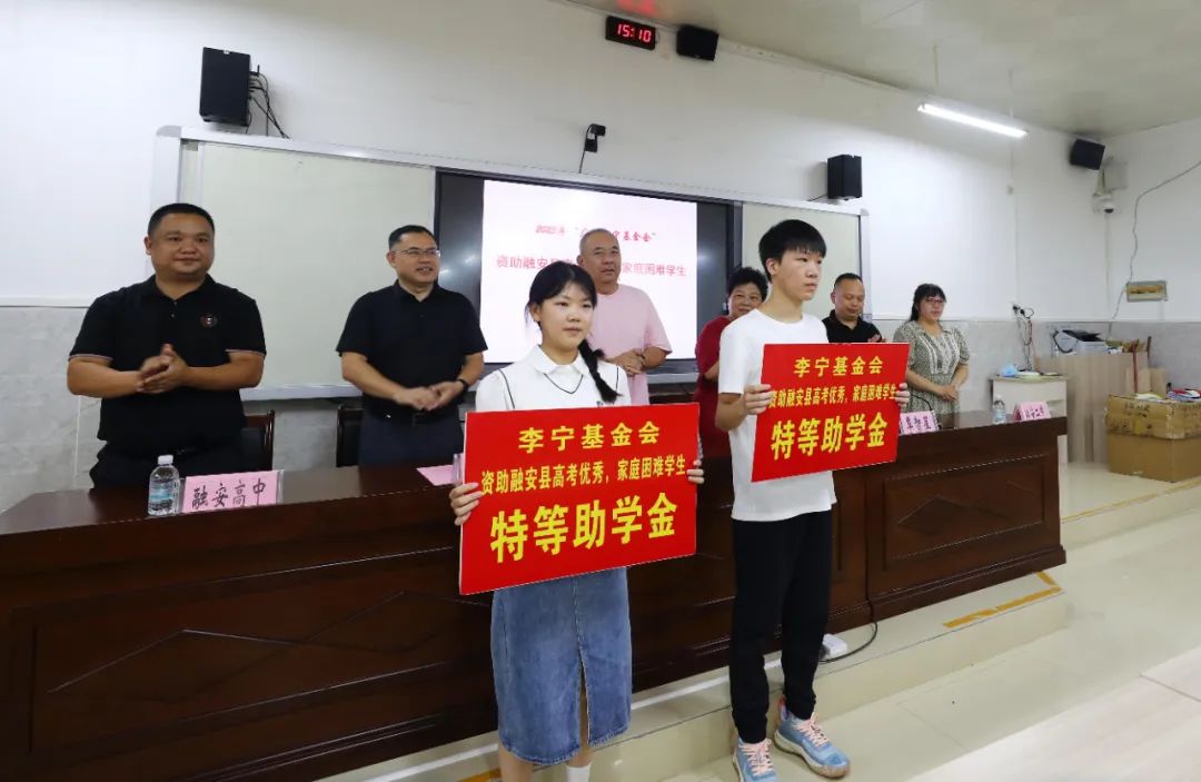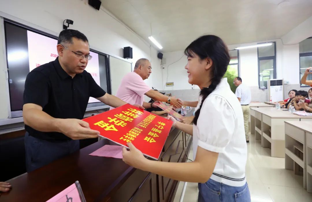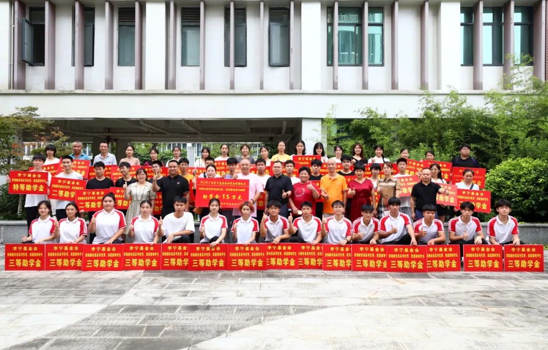 8月22日,在廣西柳州市融安縣高級中學,縣人大常委會副主任朱炳文在為優秀準大學生發助學金。(韋榮軍 攝)