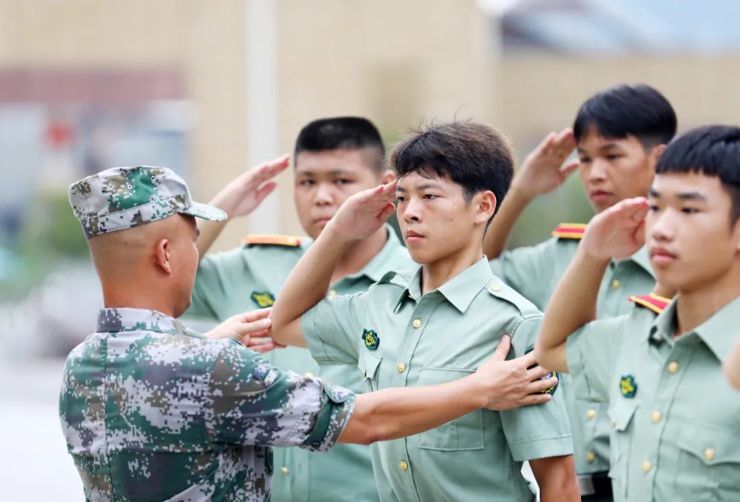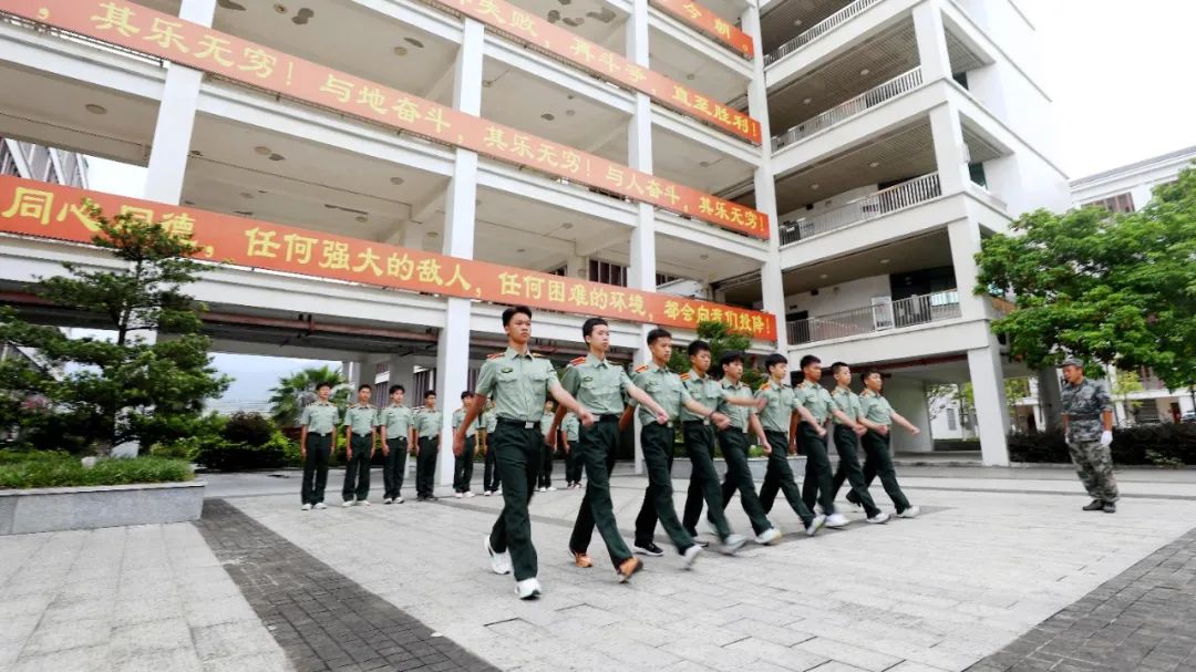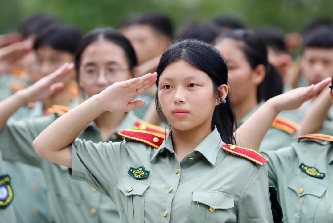 2023年8月22日,在廣西柳州市融安縣高級(jí)中學(xué),高一年級(jí)的新生在參加軍訓(xùn)。(韋榮軍 攝)