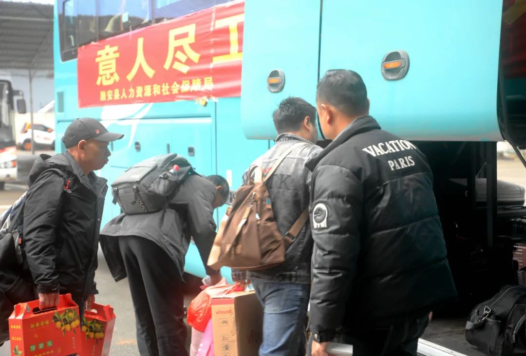 早上9點(diǎn),外出務(wù)工人員早早地來(lái)到了汽車總站,大家手中拎著行李,在車站工作人員的組織下逐一核對(duì)、登記信息,登上返崗復(fù)工專車,開(kāi)啟新一年的奮斗生活。
