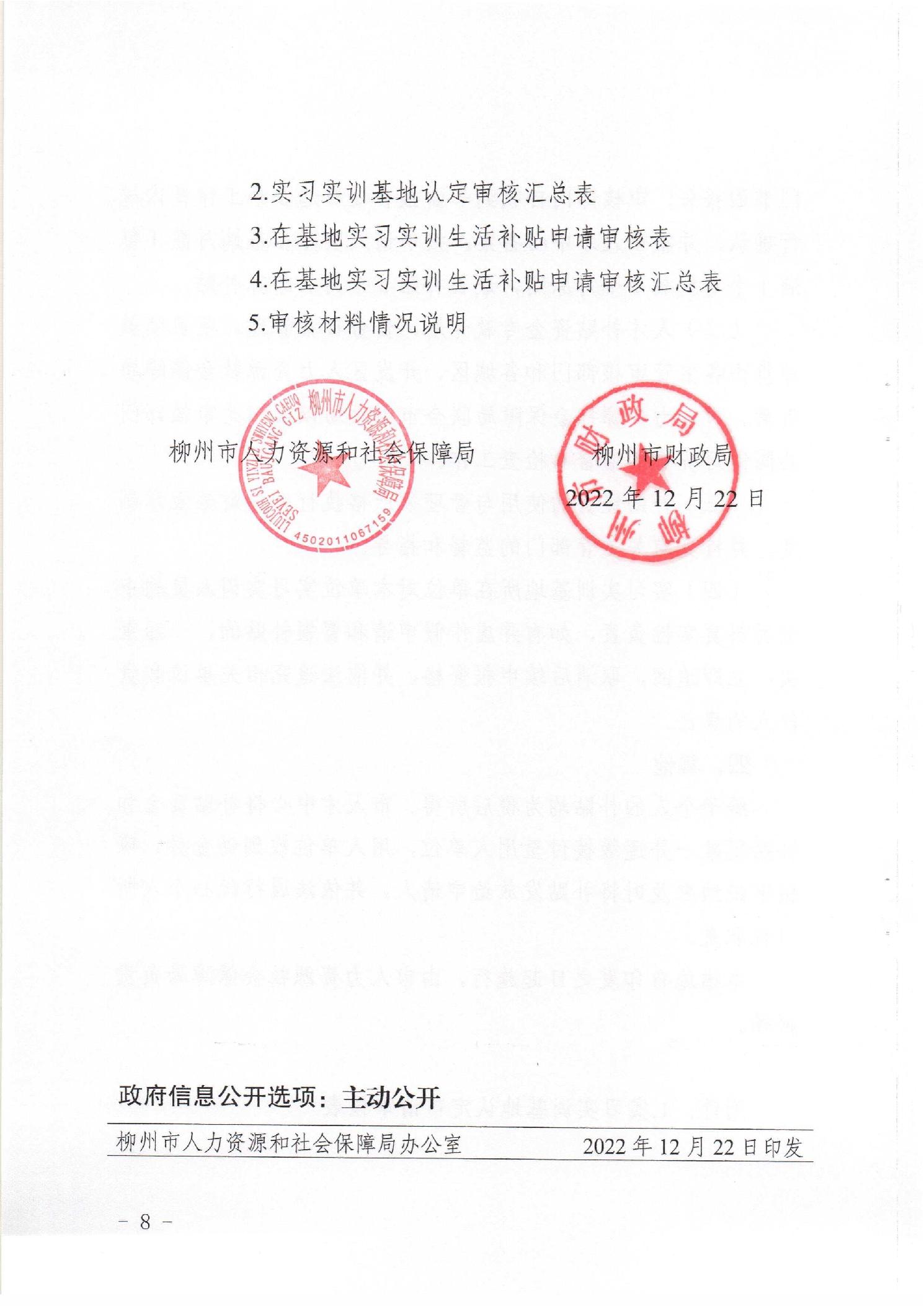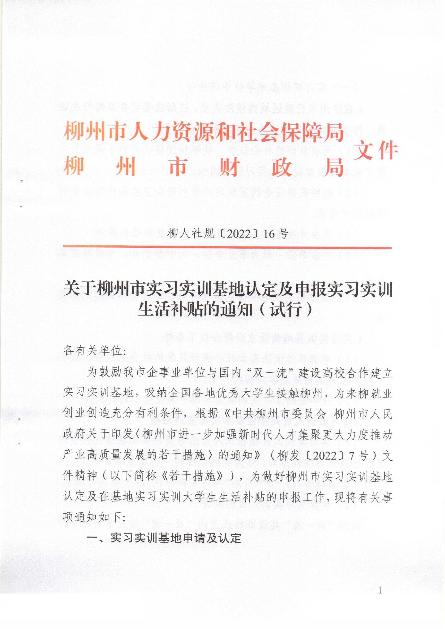 柳人社規〔2022〕16號 關于柳州市實習實訓基地認定及申報實習實訓生活補貼的通知(試行)
