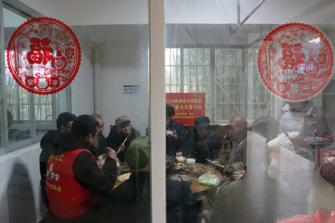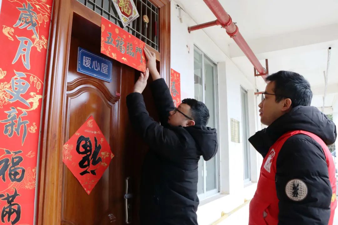 2月7日,在大坡鄉崗偉村敬老院,鄉民政辦工作人員、志愿者正在張貼春聯。當日,為保障民政對象溫暖過春節,大坡鄉按照融安縣民政局要求,開展“柳小明”暖心春節活動—融安行”,到敬老院開展暖心慰問。