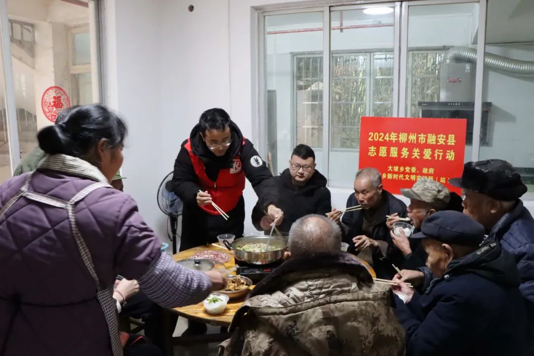“吃個團圓飯,過個幸福年”。為了讓崗偉村敬老院的老人們感受到黨和政府的關心和關懷,過個開心幸福的新春佳節,大坡鄉民政辦工作人員早早準備,給老人們做了一桌豐盛的“團圓飯”,在做飯間隙,志愿者還陪老人們聊天、下棋,崗偉村敬老院內充滿了歡聲笑語。雖然天氣寒冷,大家的心里卻暖融融的,院內工作人員忙前忙后,為老人們端菜、添飯,餐桌上流淌著溫情,大家邊吃邊聊,吃得格外香甜。