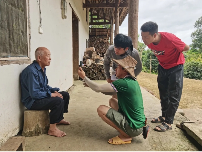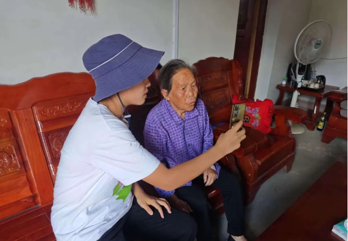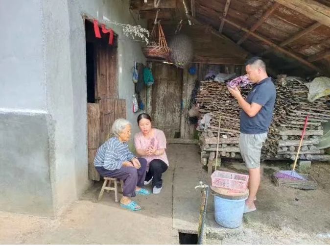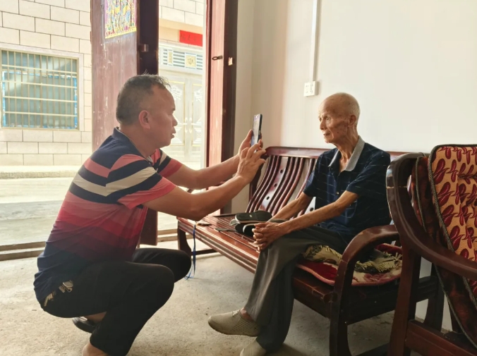 鄉干部對高齡老人開展上門認證工作。