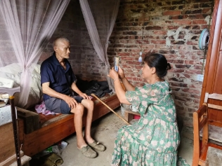 各村開展高齡老人上門補貼認證工作現場。