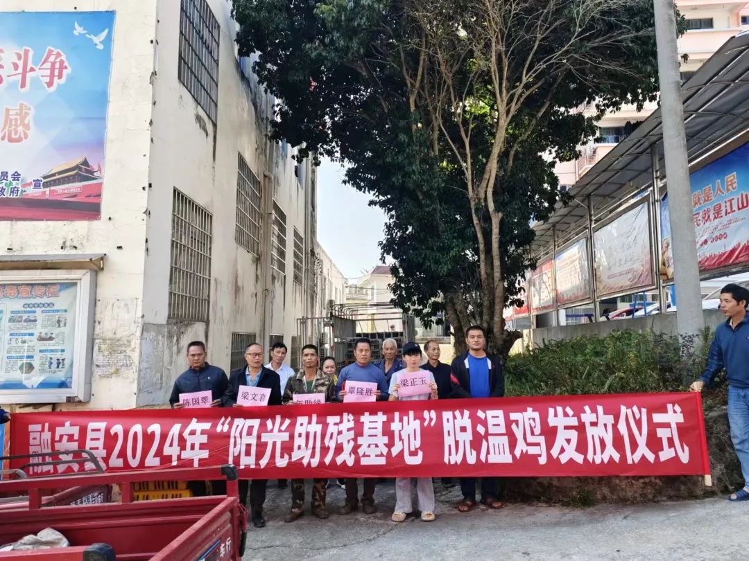 10月10日,融安縣2024年“陽光助殘基地”脫溫雞發放儀式現場