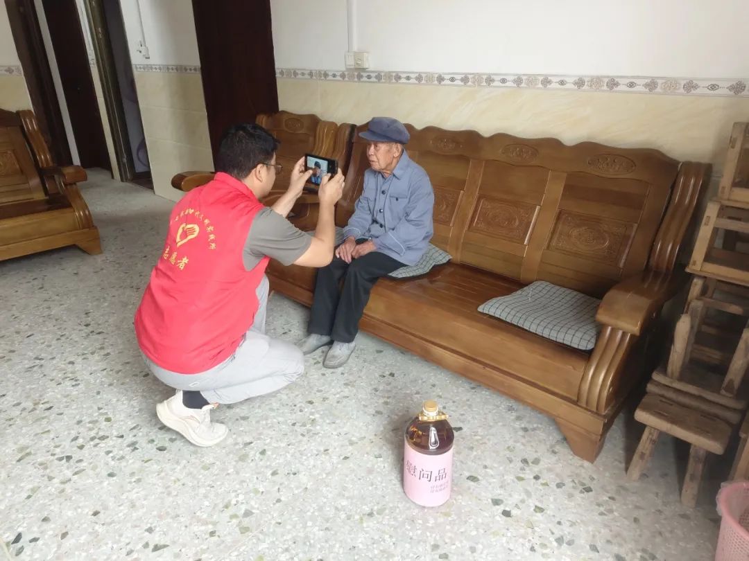 浮石鎮退役軍人服務站工作人員為起西村退役軍人韋光進行優撫對象年度認證。