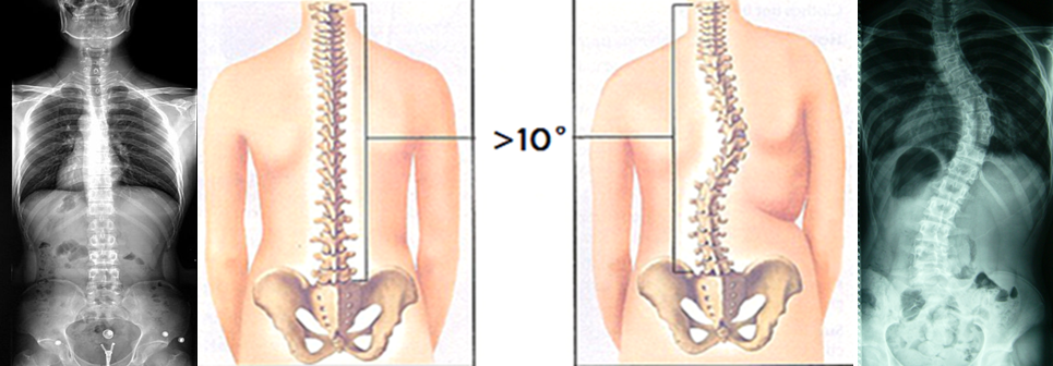正常人的脊柱從后面看應該是一條直線,并且軀干兩側對稱。如果脊柱偏移軀干中線,X光片上的彎曲角度(Cobb角)大于10°時,就稱之為脊柱側凸,俗稱脊柱側彎。