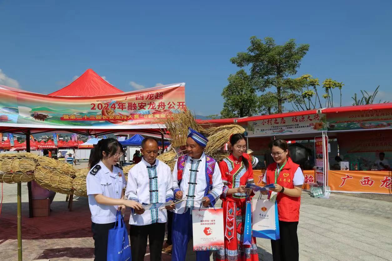 2024年融安龍舟公開賽于9月14日如期舉行,現場人聲鼎沸、熱鬧非常。融安縣稅務局以廣西龍舟比賽為契機,積極組織“親情陪辦幫幫團”志愿服務隊到龍舟比賽現場,借助比賽現場人流量大、輻射面廣、信息傳播快的特點,“面對面”為納稅人繳費人解讀2025年城鄉居民醫療保險政策,“零距離”輔導納稅人繳費人線上繳費。