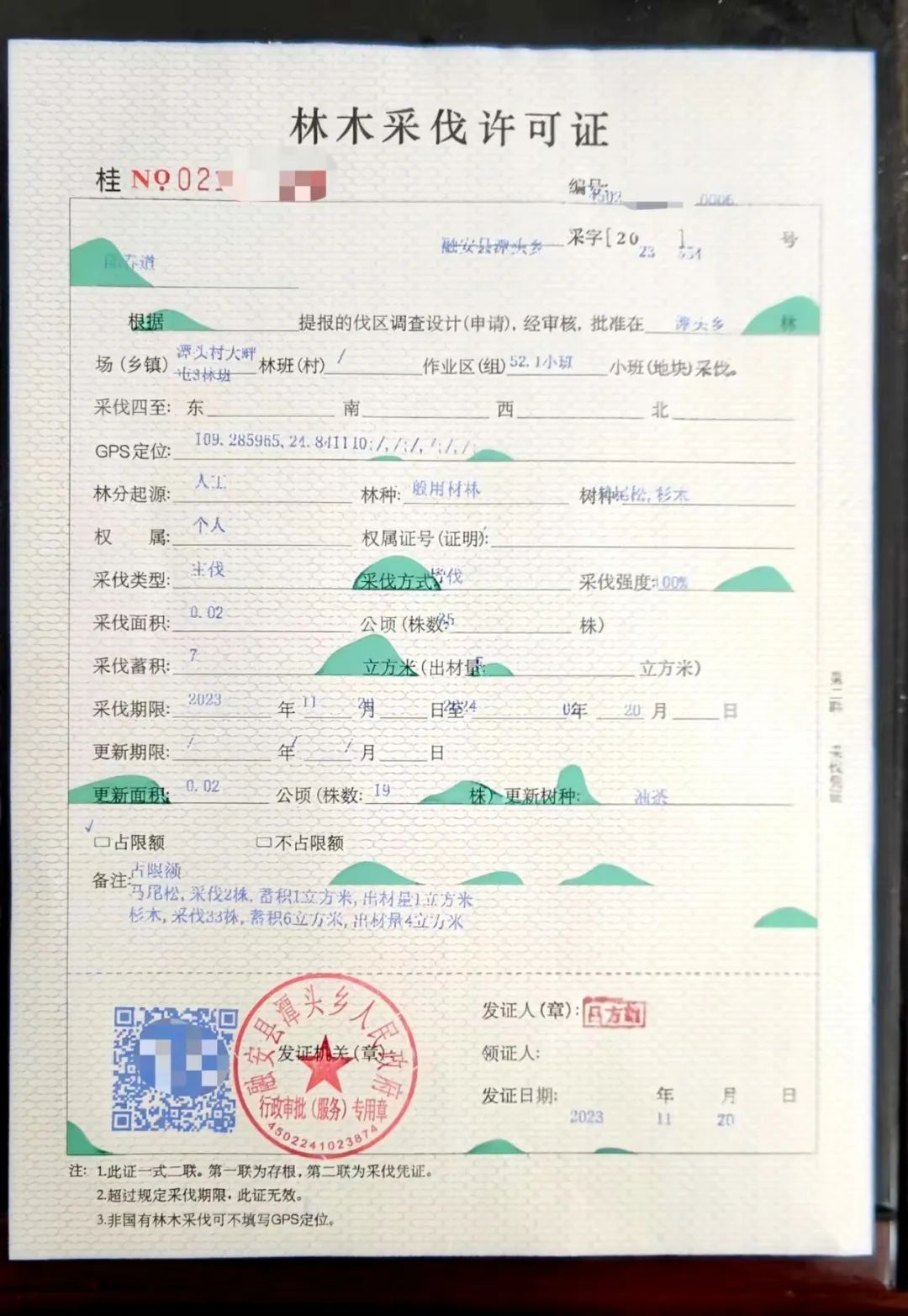 11月20日,潭頭鄉發出融安縣第一份小額人工商品林采伐證,進一步優化、簡化林農個人小額商品林采伐審批流程,為廣大林農提供便捷、優質、高效服務。