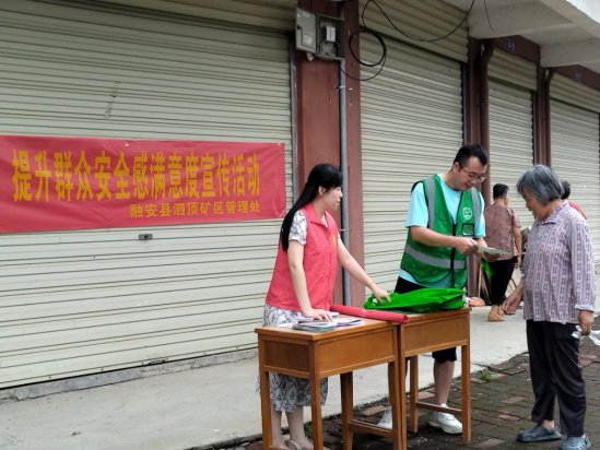 圖1:6月18日,泗頂礦區管理處禁毒工作人員及志愿者設立宣傳臺向群眾宣傳禁毒知識