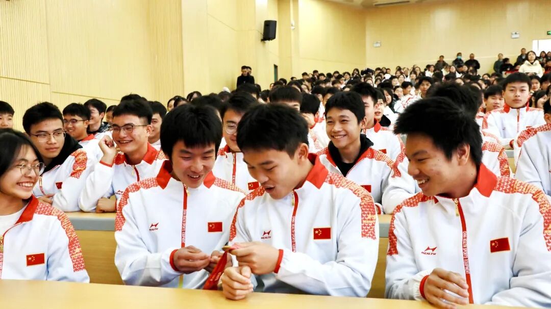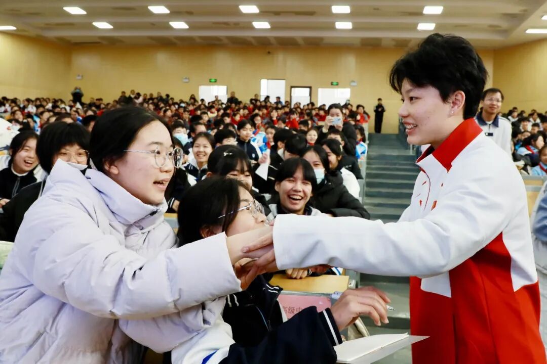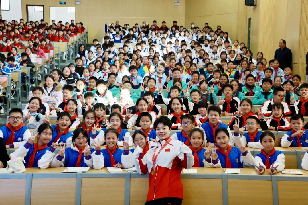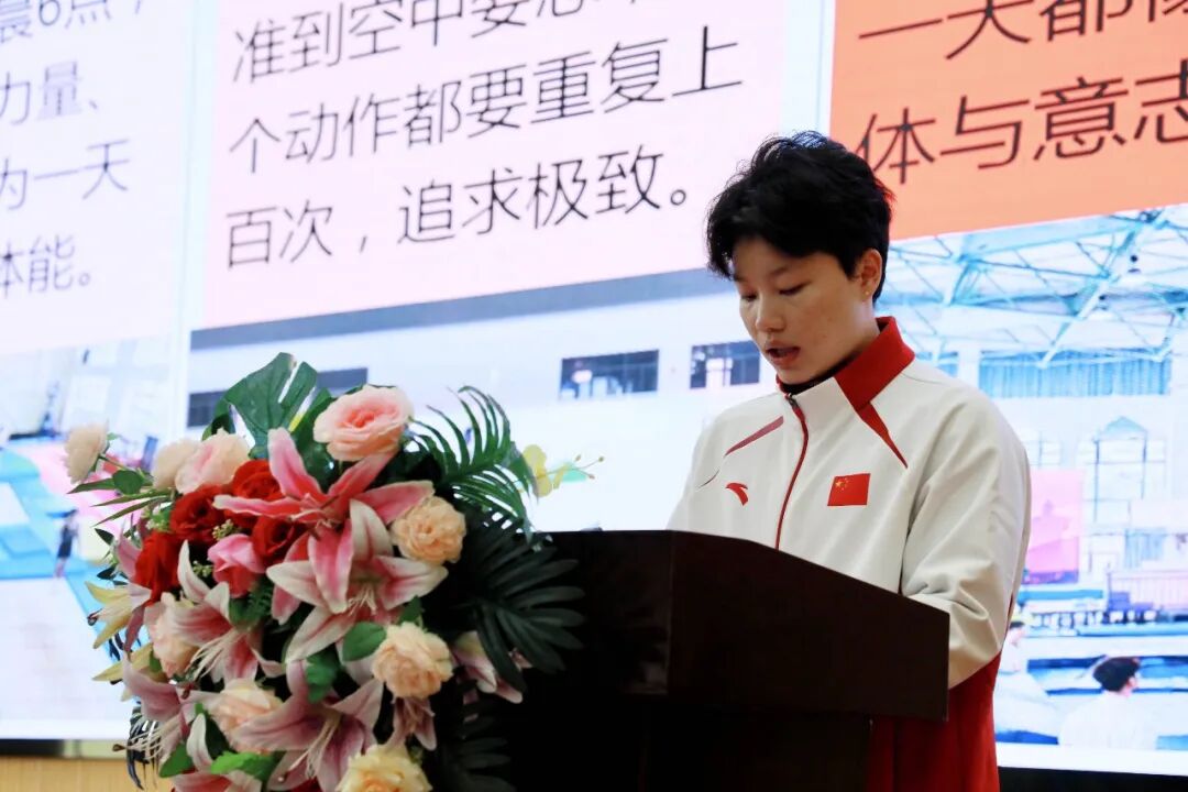 互動環節中,同學們踴躍提問,“如何克服訓練中的枯燥和困難”“面對壓力時怎樣調整心態”等問題接連拋出。游情結合自身經歷耐心解答,并鼓勵大家:“學習和追夢就像蹦床訓練,只有腳踏實地、不怕摔倒,才能不斷蹦出新高度。”同時,她還寄語同學們要珍惜青春時光,發現自己的優勢并堅持下去,在成長路上勇敢面對挑戰,書寫屬于自己的精彩篇章。