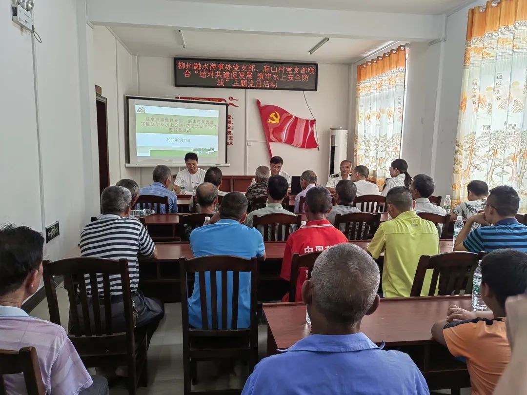 柳州海事局融水海事處黨支部、麻山村黨支部聯合開展“結對共建促發展,筑牢水上安全防線”主題黨日活動現場。
