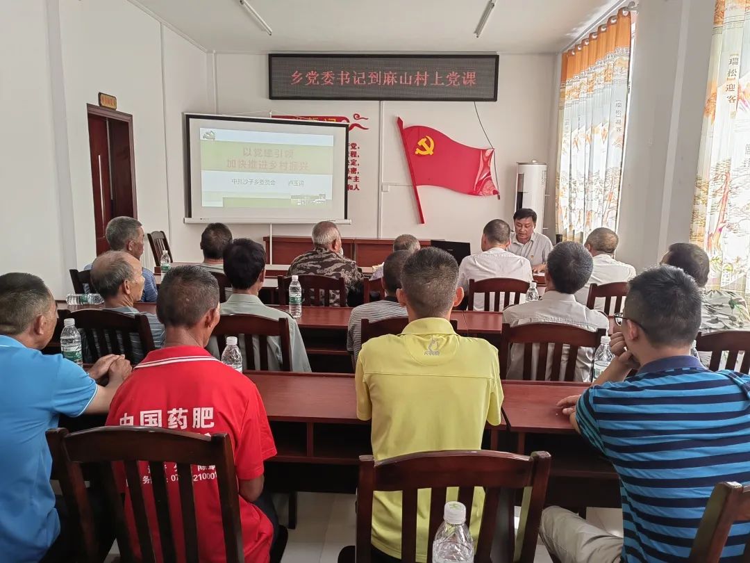 沙子鄉黨委書記盧玉詞在麻山村給全體黨員上黨課。