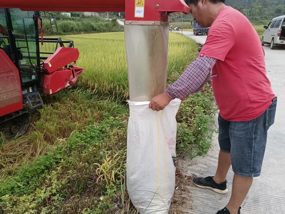 農戶們忙著把一袋袋顆粒飽滿的稻谷搬運上車,臉上洋溢著收獲的喜悅。