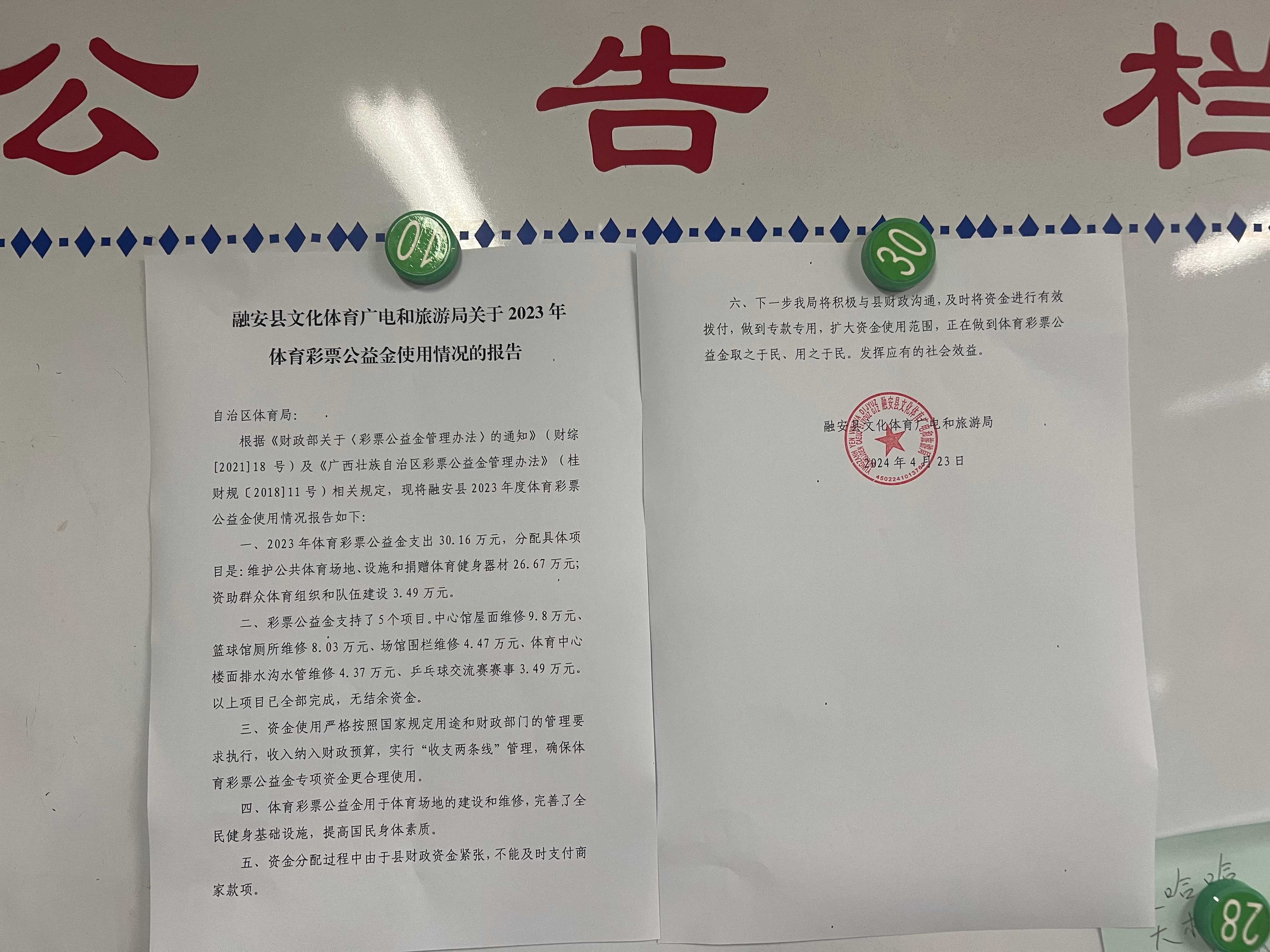 融安縣文化體育廣電和旅游局關(guān)于2023年體育彩票公益金使用情況的報告