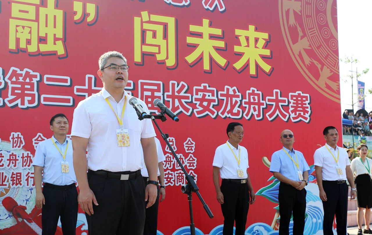 9月14日,在2024年融安龍舟公開賽暨第二十三屆長安龍舟大賽上,縣委副書記、縣長胡偉華致辭。(韋榮軍 攝)