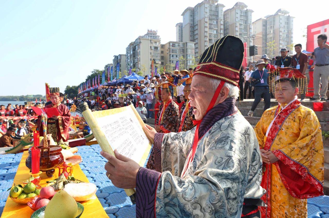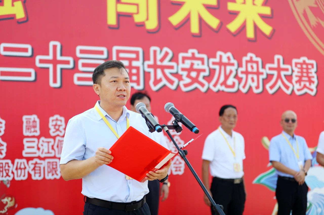 9月14日,在2024年融安龍舟公開賽暨第二十三屆長安龍舟大賽上,融安縣委書記于福堅宣布開幕。(韋榮軍 攝)