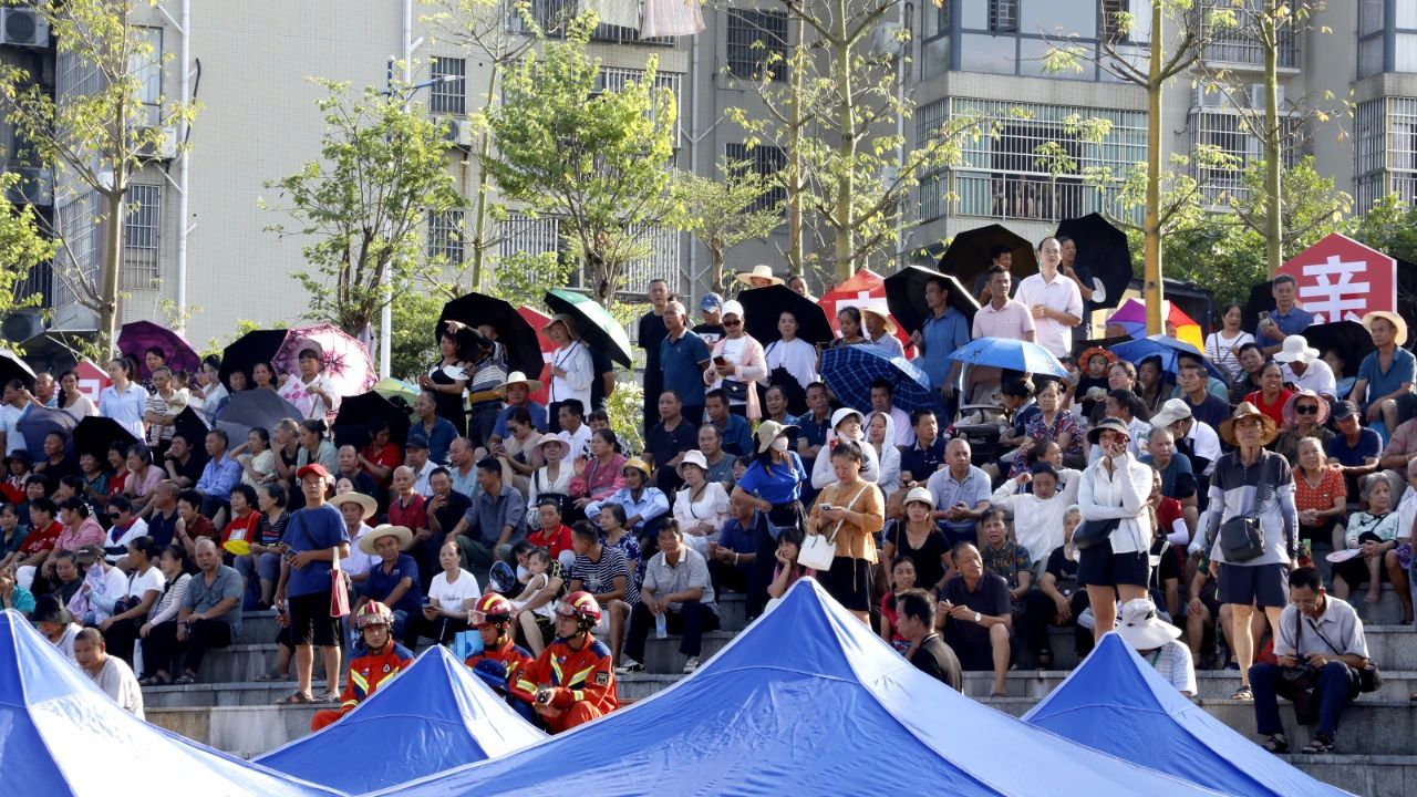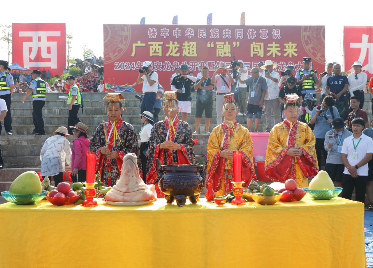 9月14日,在融安縣龍舟廣場拍攝的廣西龍超——2024年融安龍舟公開賽暨第二十三屆長安龍舟大賽點睛祈福儀式現場。(韋榮軍 攝)