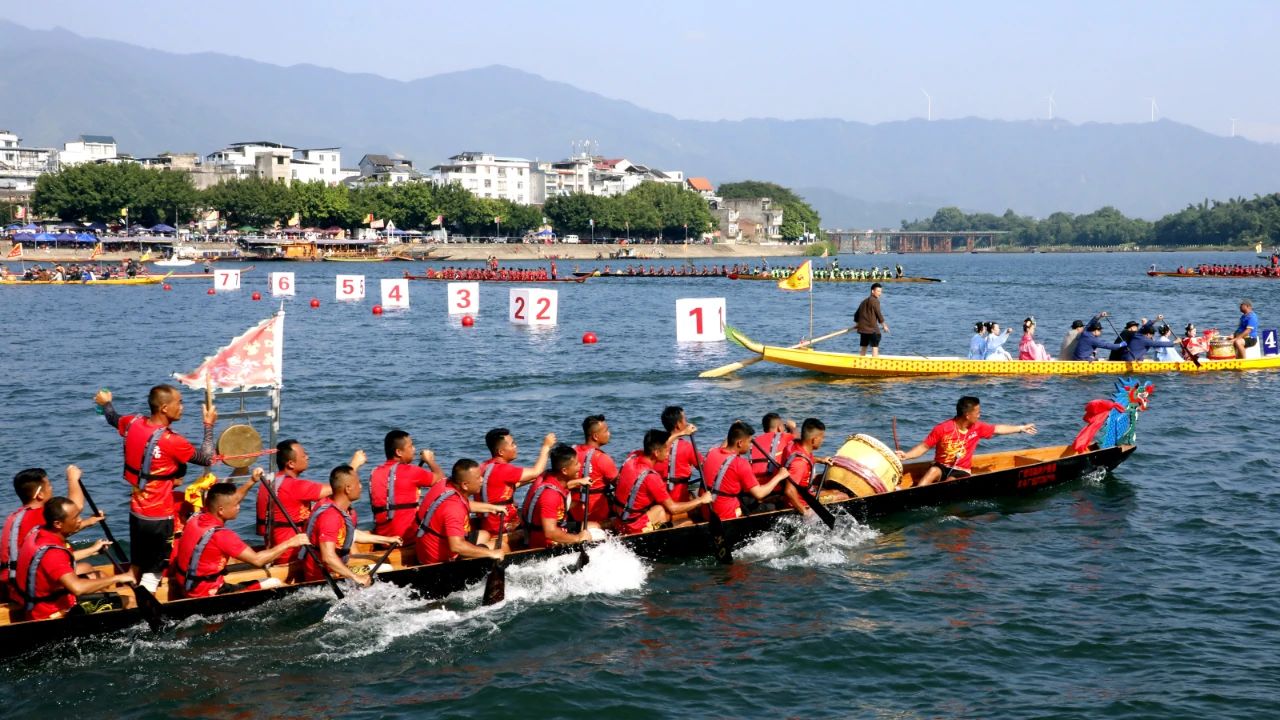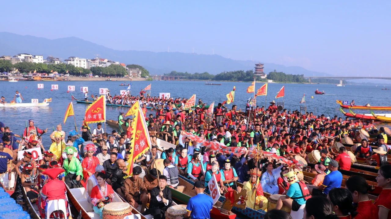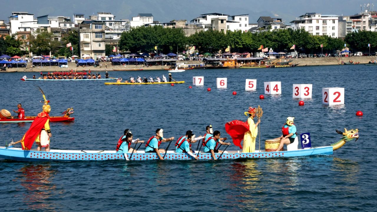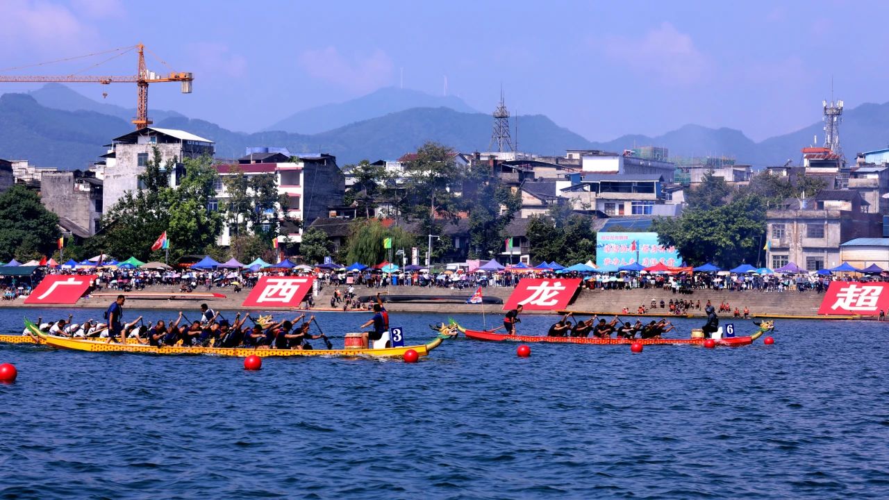 百龍融江齊歡騰,各族群眾賽龍舟。