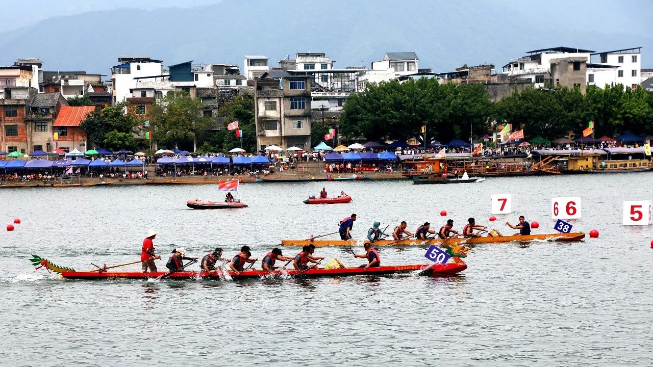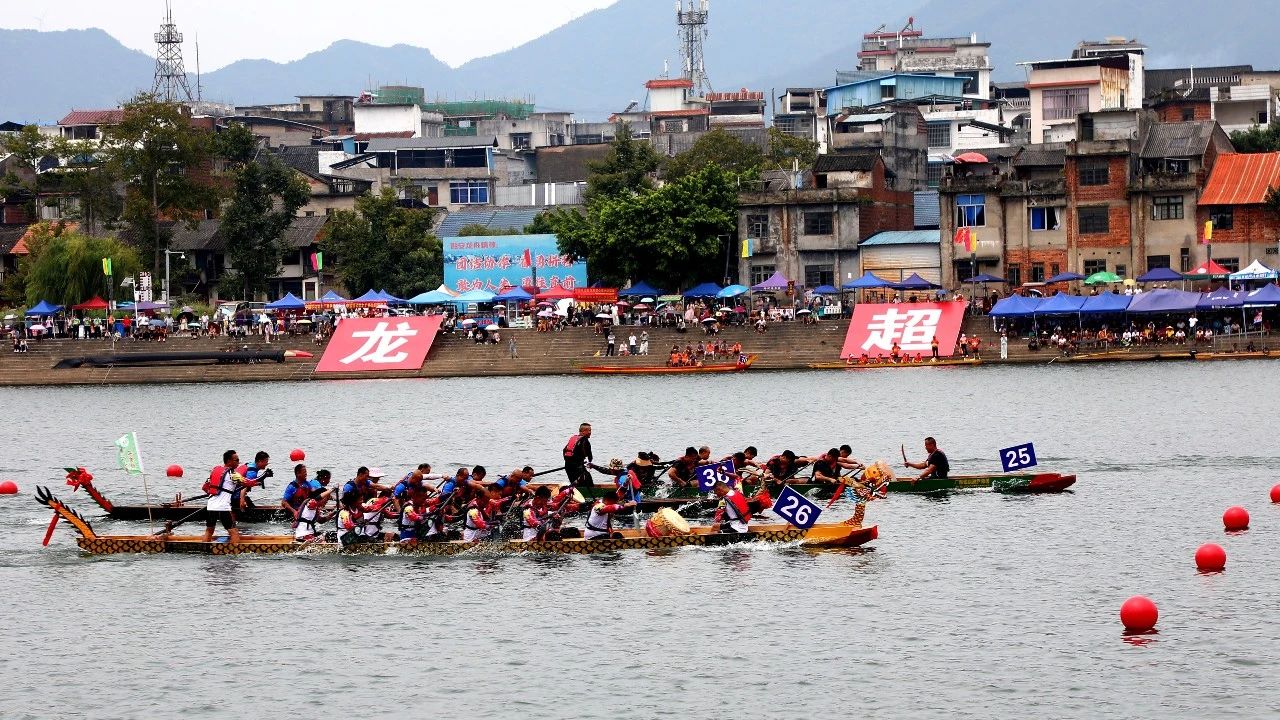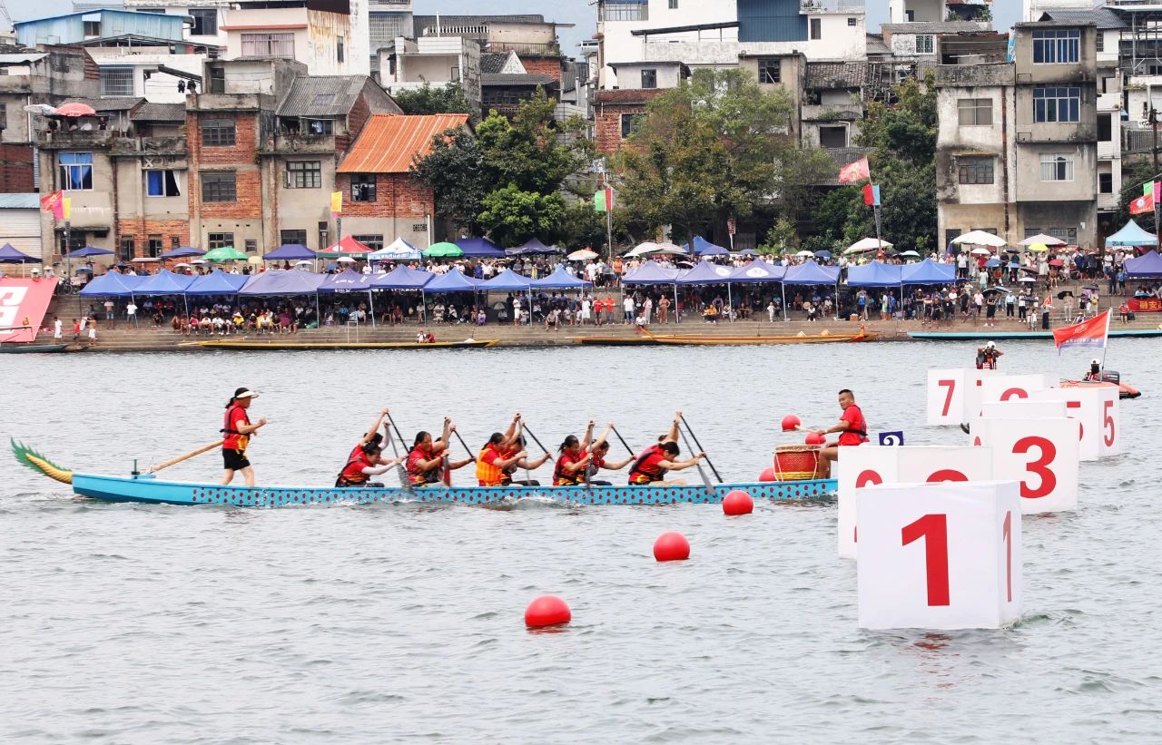 9月15日,龍舟選手在融江融安縣城段水域競渡。(韋榮軍 攝)