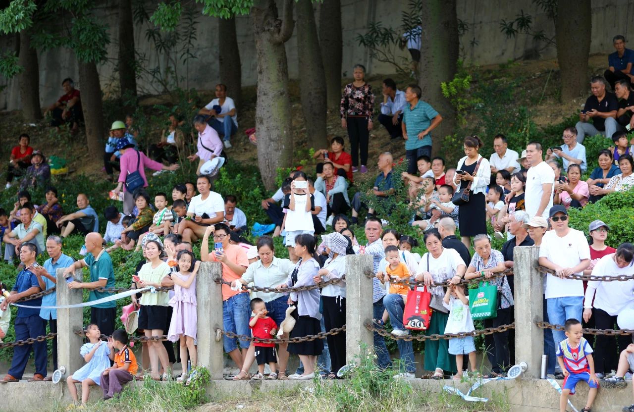 9月15日,群眾正在廣西龍超——2024年融安龍舟公開賽暨第二十三屆長安龍舟大賽現場觀賽。(龍丹 攝)