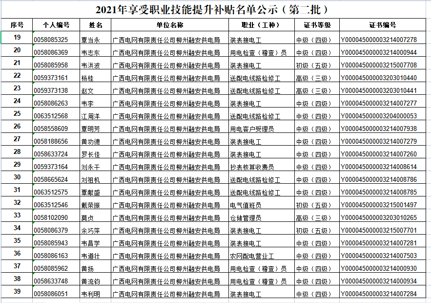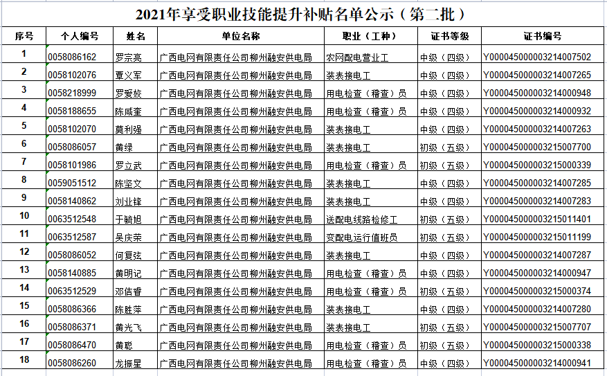2021年享受職業(yè)技能提升補(bǔ)貼名單公示(第二批)