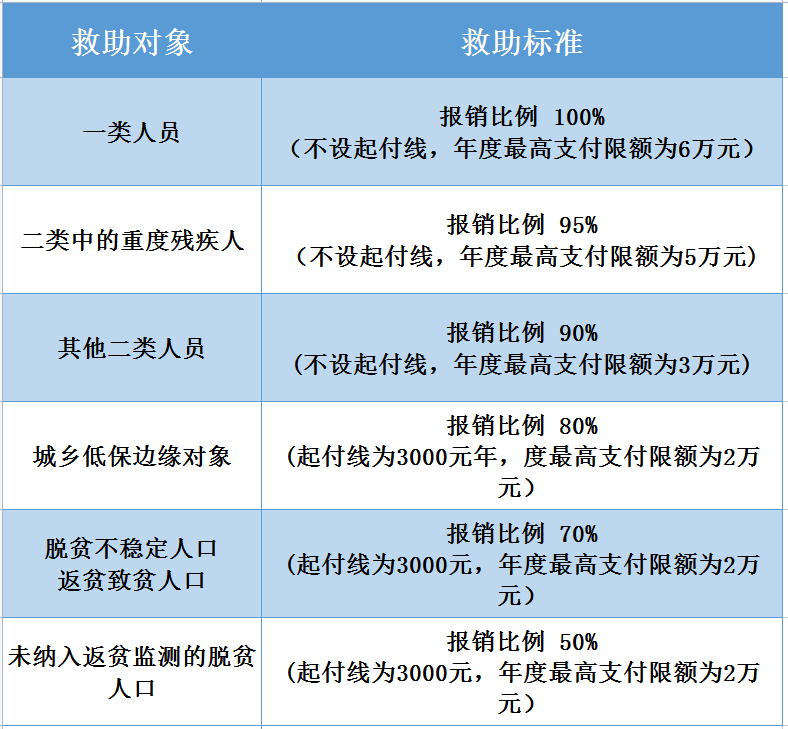 ????四類人員:享受相關基本醫療保險待遇,因高額醫療費用支出導致家庭基本生活出現嚴重困難的大病患者,以及縣級以上人民政府規定的其他特殊困難人員。