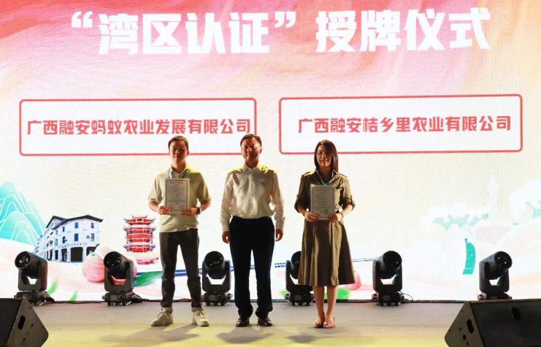 11月8日,在2025年粵桂協作融安金桔粵港澳大灣區(珠海)推介會上拍攝的“灣區認證”授予現場。(方淑敏 攝)