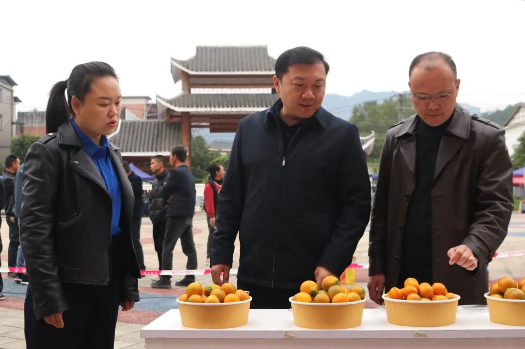 12月2日,在融安縣板欖鎮第三屆金桔節“我是板欖金桔王”擂臺賽活動現場,縣委副書記、縣長胡偉華到現場指導。(黃寶玲 攝)