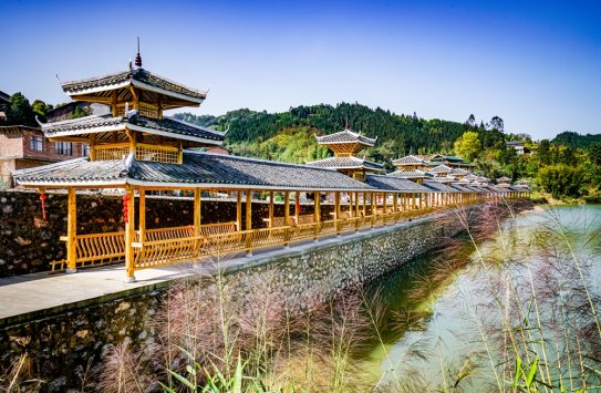 大袍屯位置處于大山環(huán)繞之中,2012年以前,大袍屯與外界的溝通主要依靠水運(yùn),交通不便,2012年公路通車之后,大袍屯的基礎(chǔ)設(shè)施、產(chǎn)業(yè)等得以快速發(fā)展。最具苗寨特色的風(fēng)雨橋、苗寨民族樓、苗寨辦公樓、民族廣場、休閑長廊等公共設(shè)施建設(shè)完工,通過房屋修繕和墻體彩繪,統(tǒng)一群眾住房建筑風(fēng)格和裝飾色彩,突出苗族傳統(tǒng)民居建筑特色和苗族文化元素,打造民族風(fēng)情濃郁的文化苗寨。這些民族特色的公共設(shè)施和周邊的特色民居井然有序的排列在環(huán)山傍水之間,與大自然完美結(jié)合,體現(xiàn)出了苗寨人民千百年以來最精髓的文明色彩。現(xiàn)在家家戶戶接通了飲用水和電,通屯道路、屯內(nèi)巷道硬化已全部建成。村民基本上家家戶戶都有約3-40畝的香杉,大袍屯河流水質(zhì)非常好,非常適合發(fā)展網(wǎng)箱養(yǎng)魚產(chǎn)業(yè),目前網(wǎng)箱養(yǎng)魚產(chǎn)業(yè)年產(chǎn)達(dá)到30萬斤以上。同時大袍屯的山溝比較多而且不受外界污染,非常適合土雞養(yǎng)殖。土雞養(yǎng)殖采用放養(yǎng)模式,任由土雞在山溝行走覓食,不進(jìn)行任何人工喂養(yǎng),養(yǎng)殖6個月方可銷售,整個大袍屯的養(yǎng)雞年產(chǎn)量超過6萬羽,價格達(dá)到每斤17-20元左右,經(jīng)濟(jì)效益非常可觀。經(jīng)過美麗鄉(xiāng)村建設(shè),大袍屯村民愛護(hù)環(huán)境的意識已經(jīng)得到了有效加強(qiáng),生活垃圾主動實(shí)施分類,各家房前屋后整潔有序,綠化率高達(dá)90%以上。