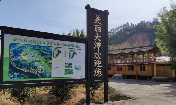 大潭生態農莊建設于2014年,投資總額150萬元,目前的道路、水電、通訊網絡建設均已完成,可投入正常使用,建有停車場1個,公廁1座,游客服務樓1座,內含游客服務中心1個,廚房1個,餐廳1個,娛樂室1個,農莊1家,沿河觀光道路1條,登山觀光步道2條,涼亭2座,生態金桔園1個,閱覽室1個,多功能會議室1個,環衛設施設有大、小垃圾桶,垃圾裝滿后,垃圾車運輸車及時運走,廁所糞便有處理設施,安全設施配備有滅火器及應急通道,應急照明燈及應急指示標志,距農莊1公里處有能處理日常傷病的村衛生室1個。